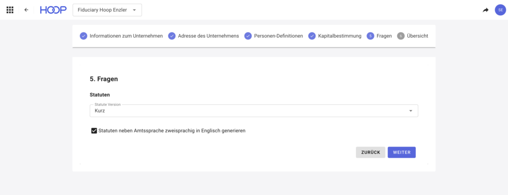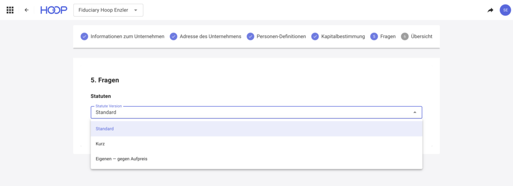 Statuten sind das Rückgrat jeder Gesellschaft – im Alltag sollen sie aber vor allem praxisnah, verständlich und passend zum Setup ausgestaltet sein. Hoop bietet neu mehr Flexibilität: Neben einem ausführlichen Standard-Statutenmodell stehen eine kurze, mehrsprachige Variante sowie die Möglichkeit zur Verfügung, individuelle Statutenvorlagen zu hinterlegen und zu verwenden.
